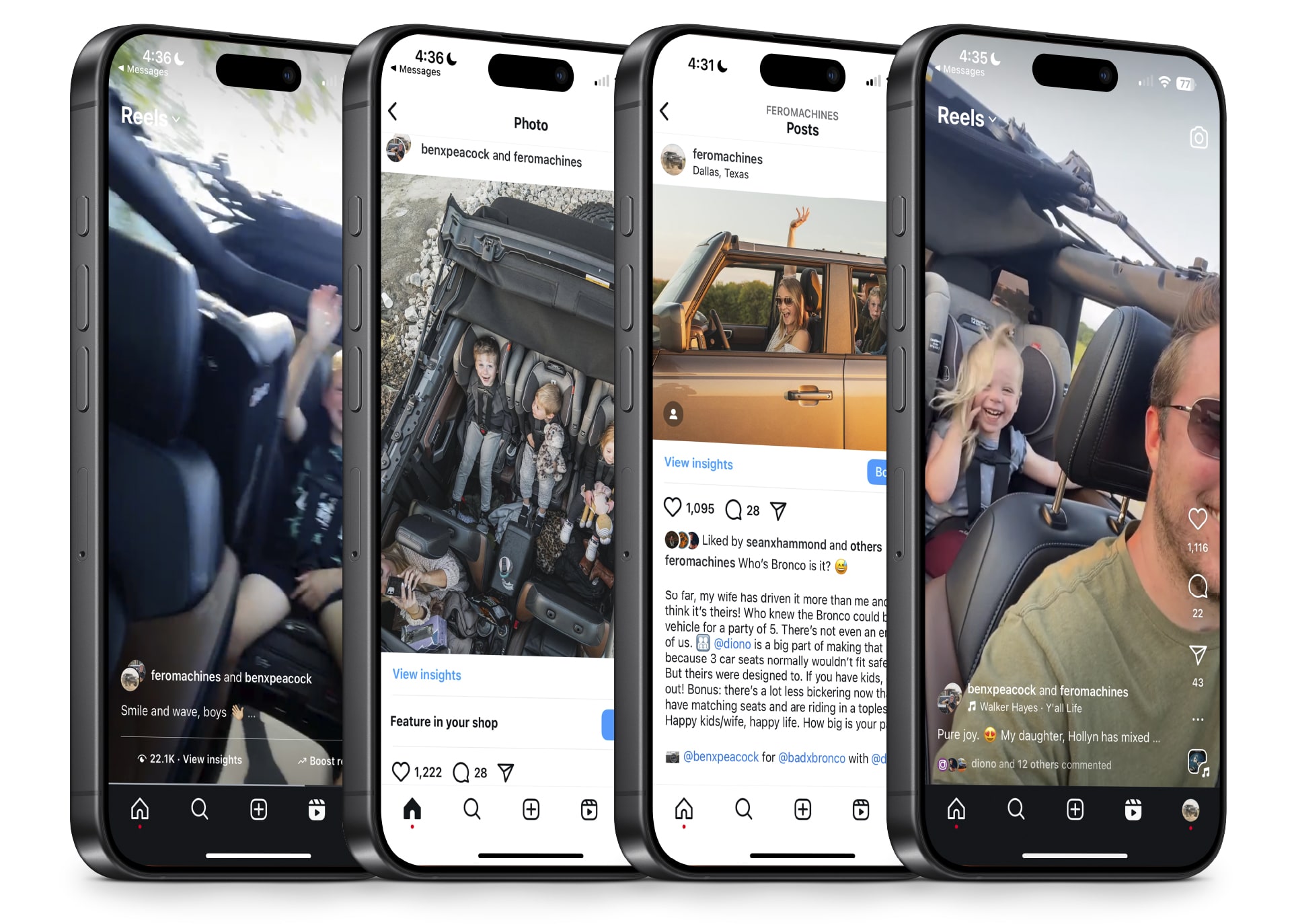 The collective Instagram posts yielded over 100k views and 7k interactions (likes, comments, shares, bookmarks) over the duration of the collaboration, and helped solidify Diono as the three-across car seat leader for Bronco owners with kids.