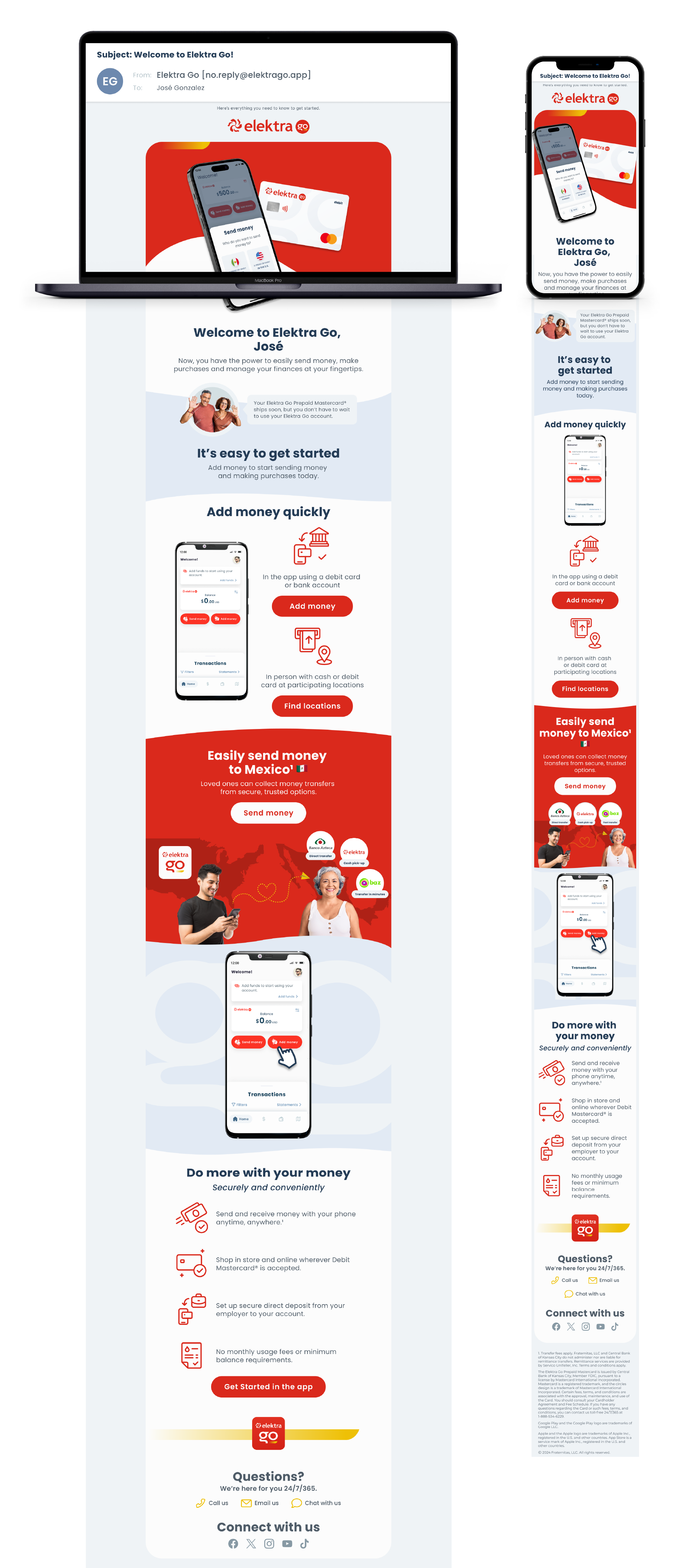 Elektra, the 12th largest Mexican company in the Forbes Global 2000, started a new app and fintech brand called Elektra Go. They reached out to us for help with strategic marketing, design, and copywriting for their launch ad campaigns, landing page, welcome email, and event experience materials.