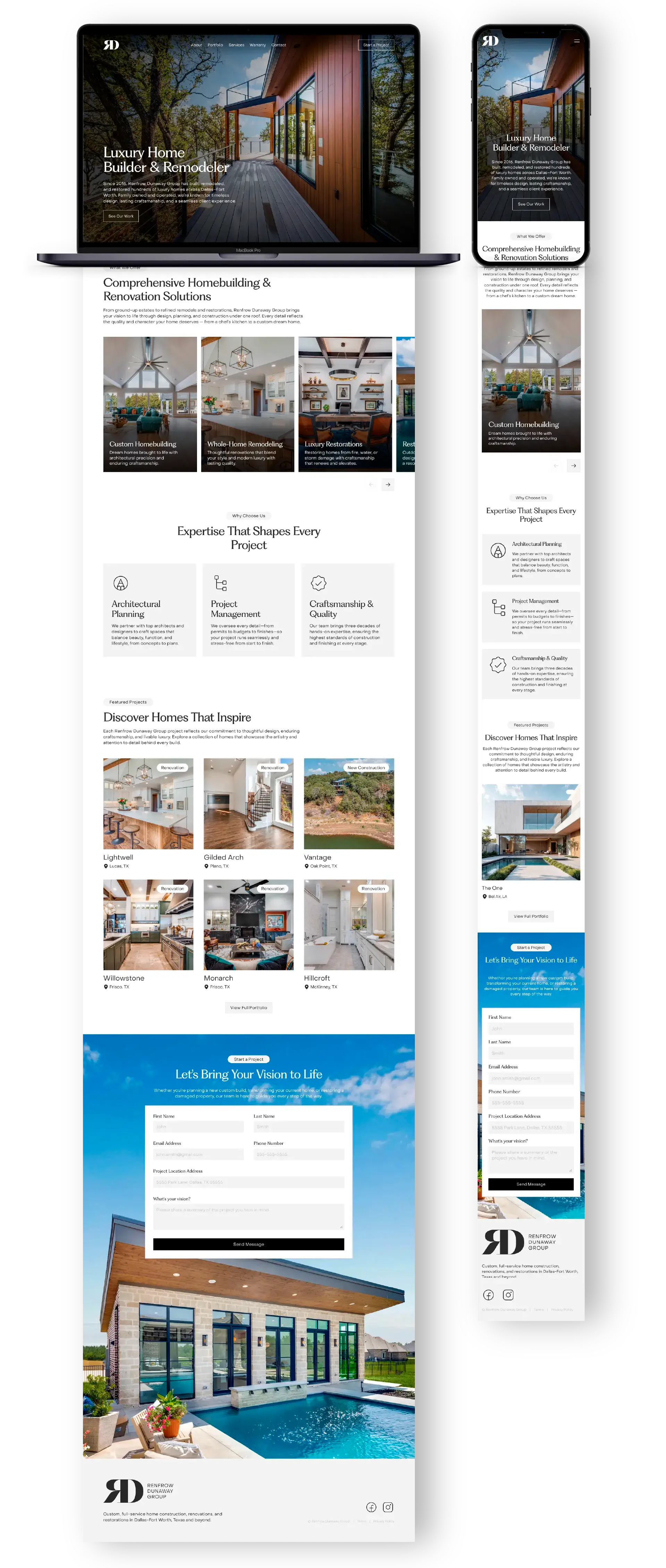 When Renfrow Dunaway Group came to us, they had an outdated website that no longer reflected the caliber of homes they build. The work itself was exceptional, but the digital experience didn’t yet convey the quiet confidence expected of a high-end, luxury builder.
